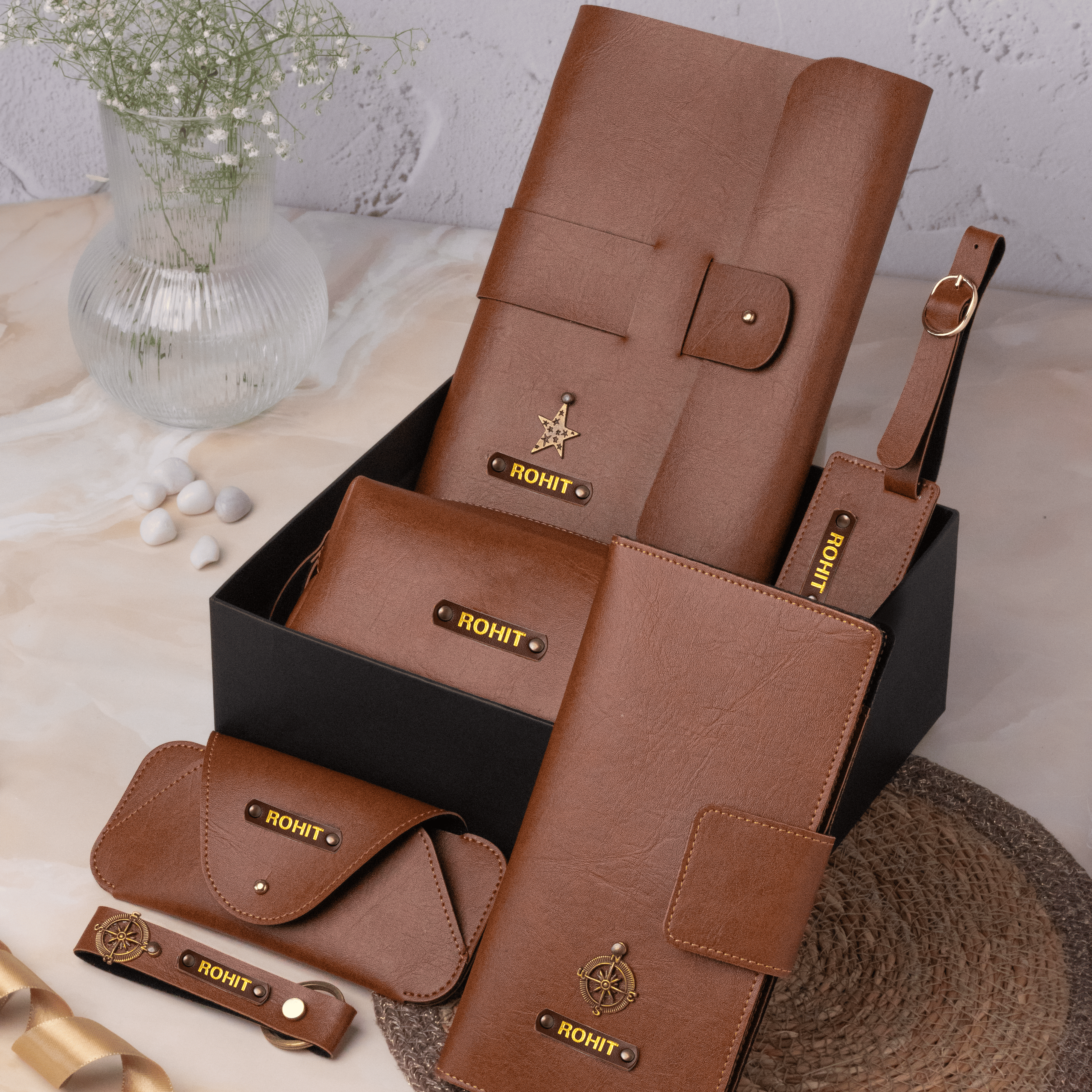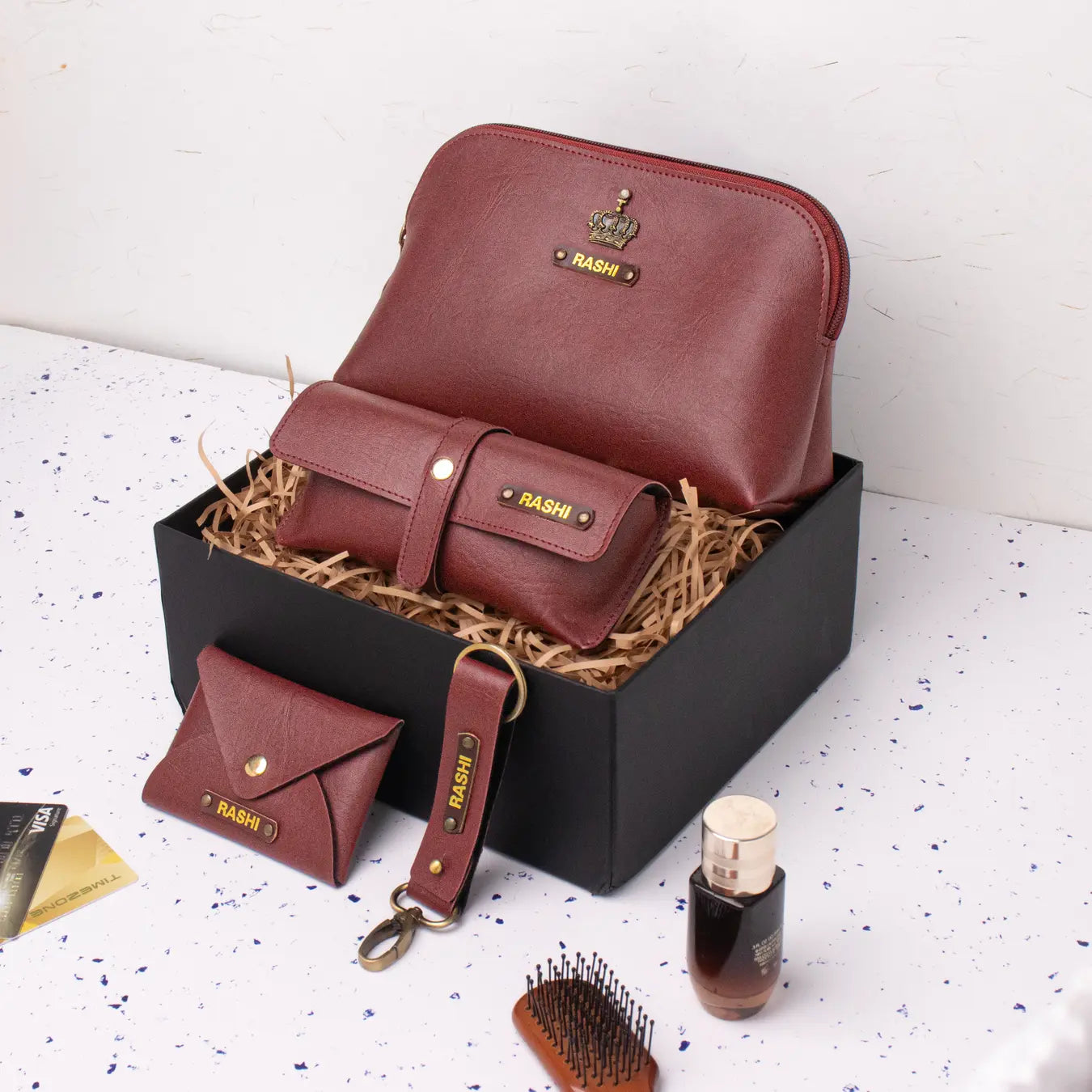 Customized gift sets, branded with names, initials, or your company identity.