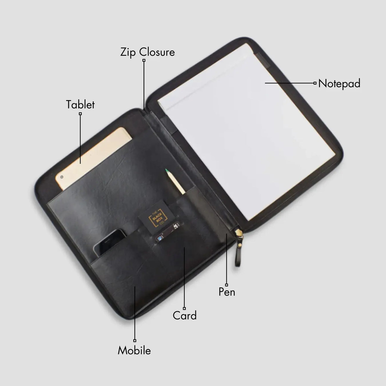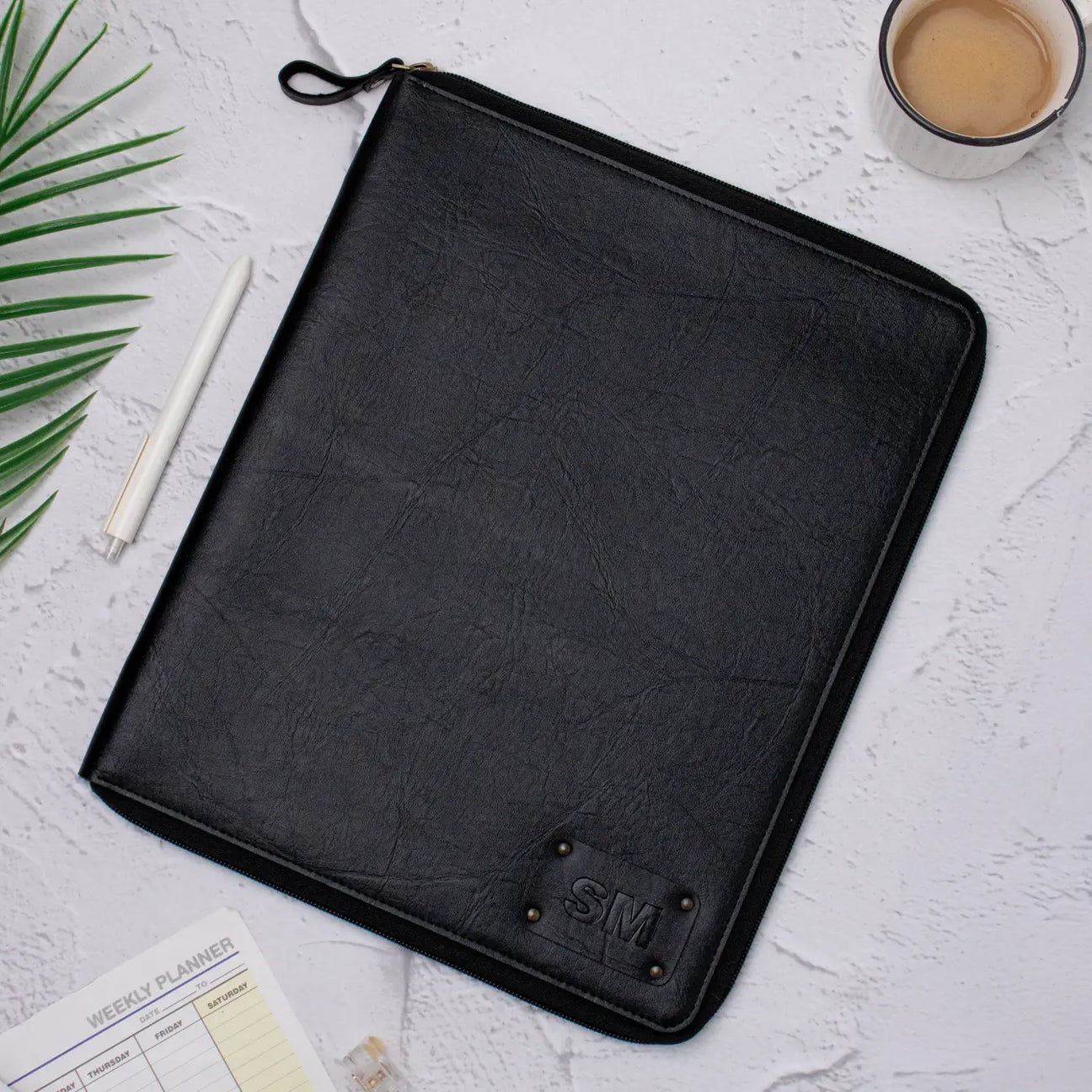 PERSONALISED ZIPPERED OFFICE FOLDER - BLACK
