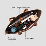 The Laptop Tote Bag is the perfect blend of style and functionality. Designed to fit it all, this classy tote comfortably holds your laptop, water bottle, tech accessories, snacks, and more, making it ideal for workdays or any outing.