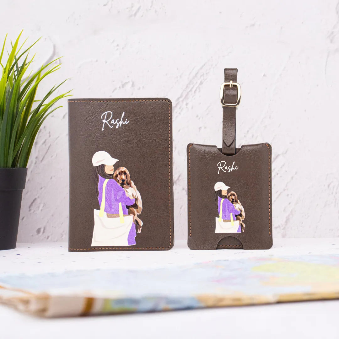Getaway Gift Box - Pet Lover - Brown Inspired by wanderers, designed to match your journey! Includes a Pet Lover Passport Cover and Printed Travel Tag in a coordinated design, stylish essentials for every explorer.
