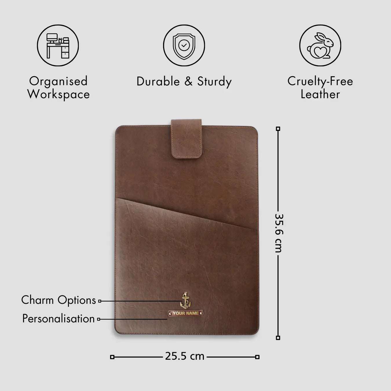 Our products are made using premium cruelty-free leather, designed to be durable, functional, and timeless.